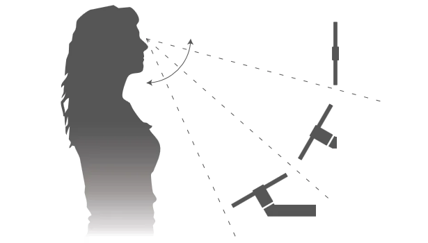 Positioning the tablet correctly for the user is very important to ensure proper use. As a rule of thumb the screen should cross the viewing direction at approximately a 90 degree angle.