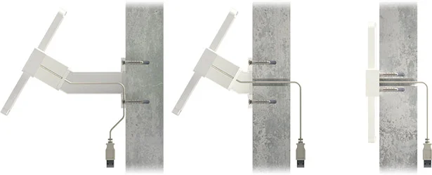 The power cable can be routed on or through the wall, depending on the possibilities on site. This flexibility ensures seamless integration into any environment, whether for permanent installations or temporary setups.